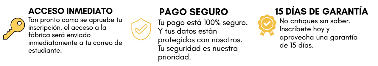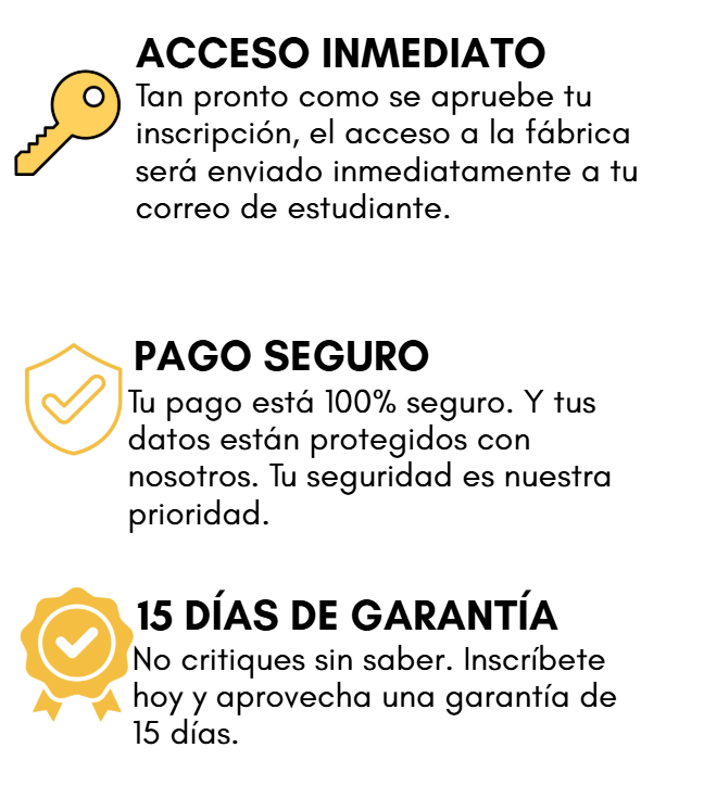 La compra de este material no garantiza ningún tipo de resultado. Hacemos todo lo posible por indicar claramente y mostrar todas las pruebas del producto, utilizando resultados reales de alumnos.