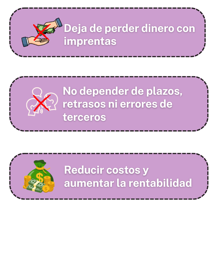 No necesitas una computadora. Con tu celular, conexión Wi-Fi y la impresora, podrás producir tus propios displays